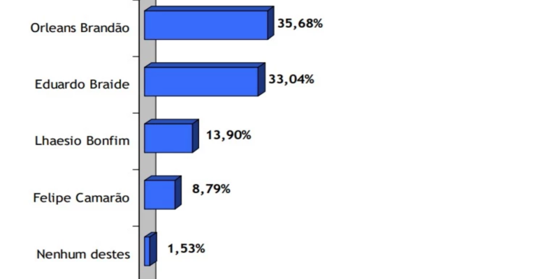 Na disputa estimulada, o secretário de Assuntos Municipalista, Orleans Brandão, aparece em primeira com poucos pontos a frente do prefeito de São Luís, Eduardo Braide.